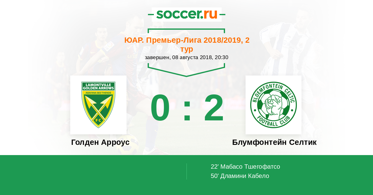 Протокол матча Голден Арроус против Блумфонтейн Селтик