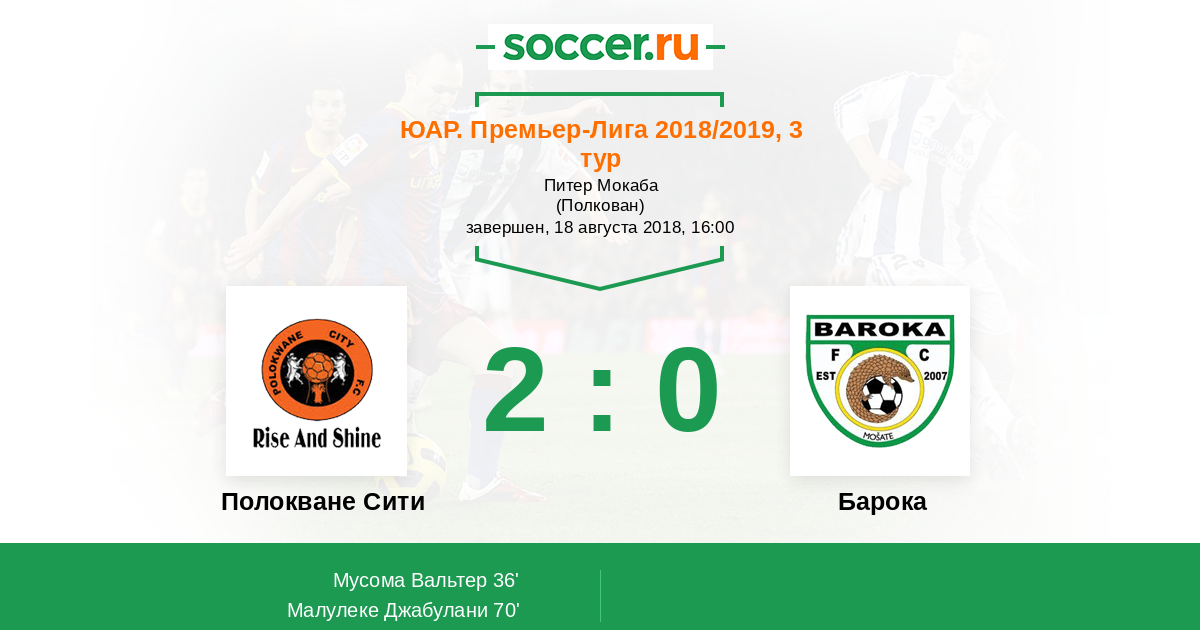 Протокол матча Полокване Сити против Барока