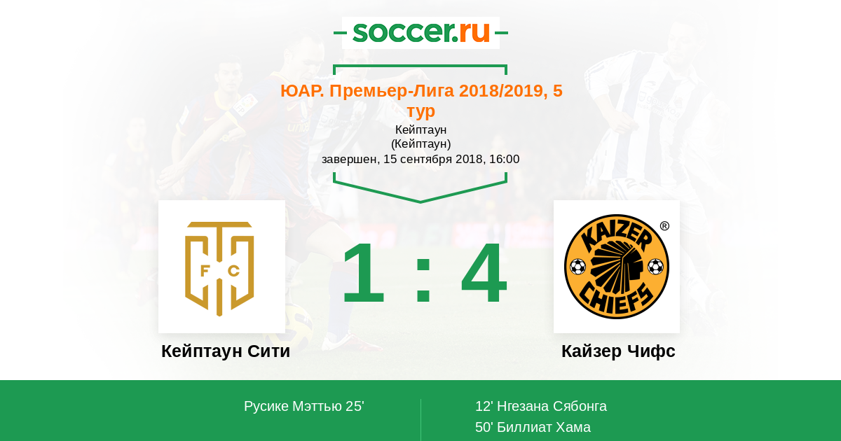 Протокол матча Кейптаун Сити против Кайзер Чифс