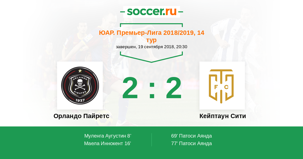 Протокол матча Орландо Пайретс против Кейптаун Сити