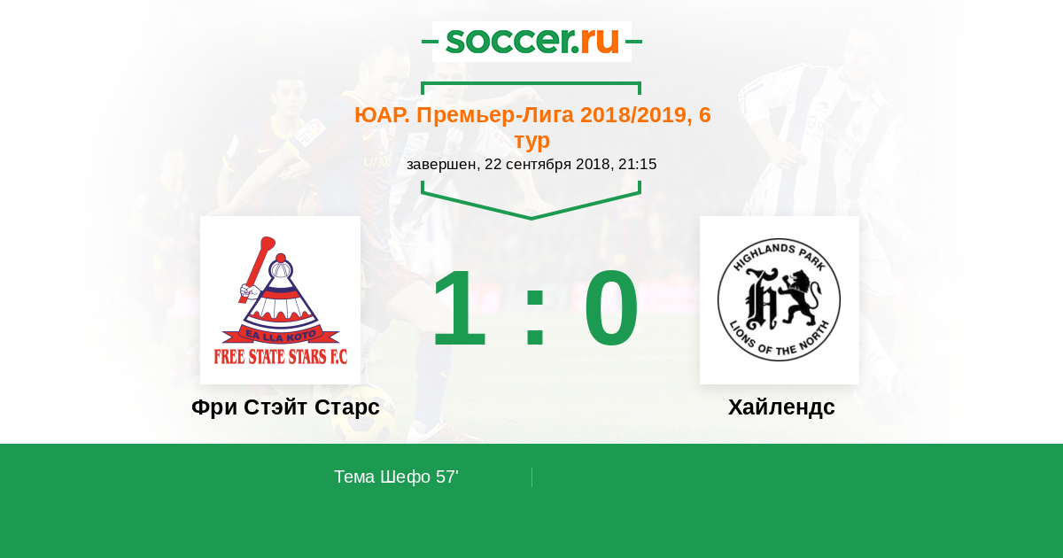 Протокол матча Фри Стэйт Старс против Хайлендс