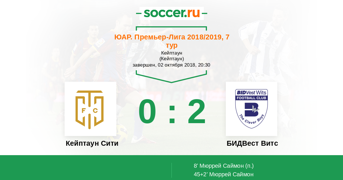 Протокол матча Кейптаун Сити против БИДВест Витс