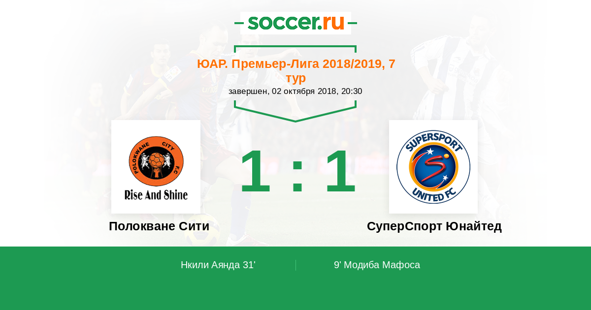 Протокол матча Полокване Сити против СуперСпорт Юнайтед