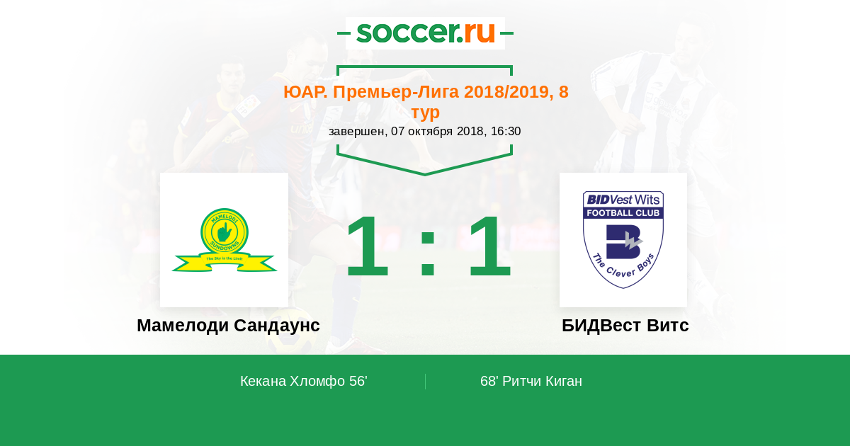 Протокол матча Мамелоди Сандаунс против БИДВест Витс