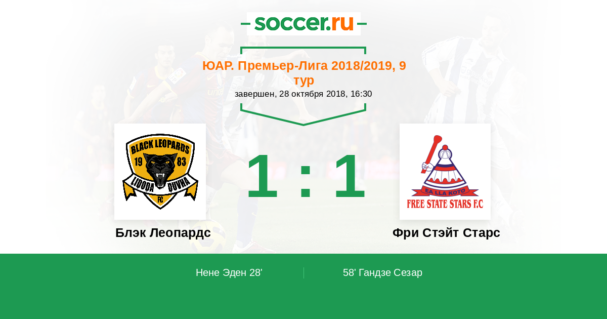 Протокол матча Блэк Леопардс против Фри Стэйт Старс