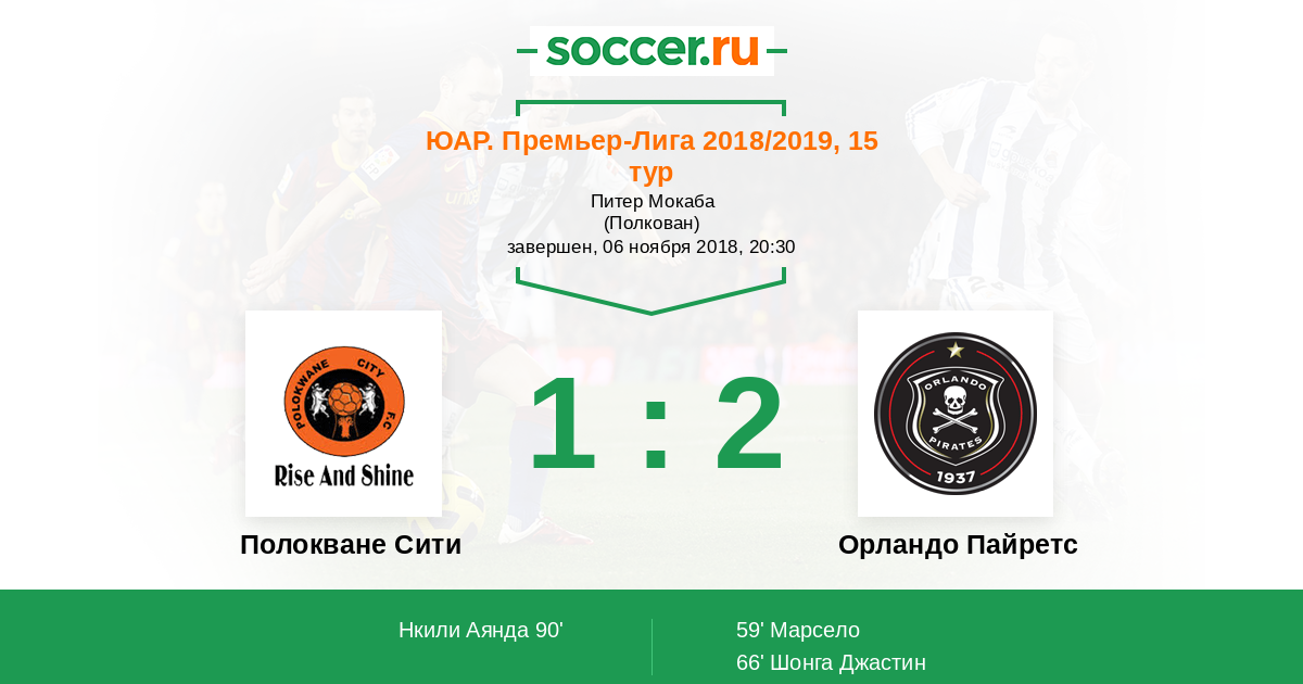 Протокол матча Полокване Сити против Орландо Пайретс