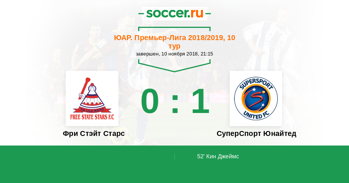Протокол матча Фри Стэйт Старс против СуперСпорт Юнайтед