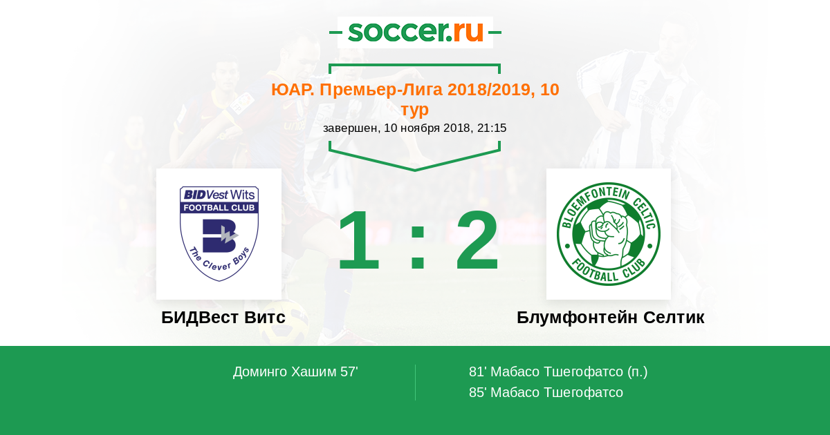 Протокол матча БИДВест Витс против Блумфонтейн Селтик