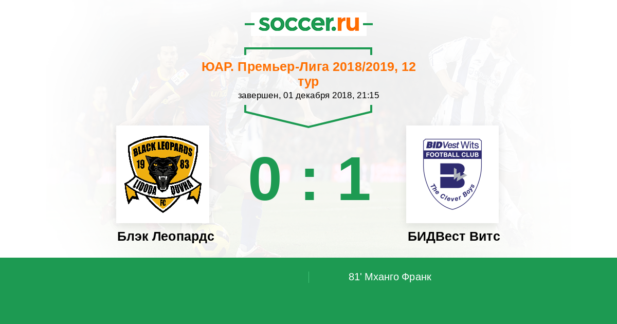 Протокол матча Блэк Леопардс против БИДВест Витс