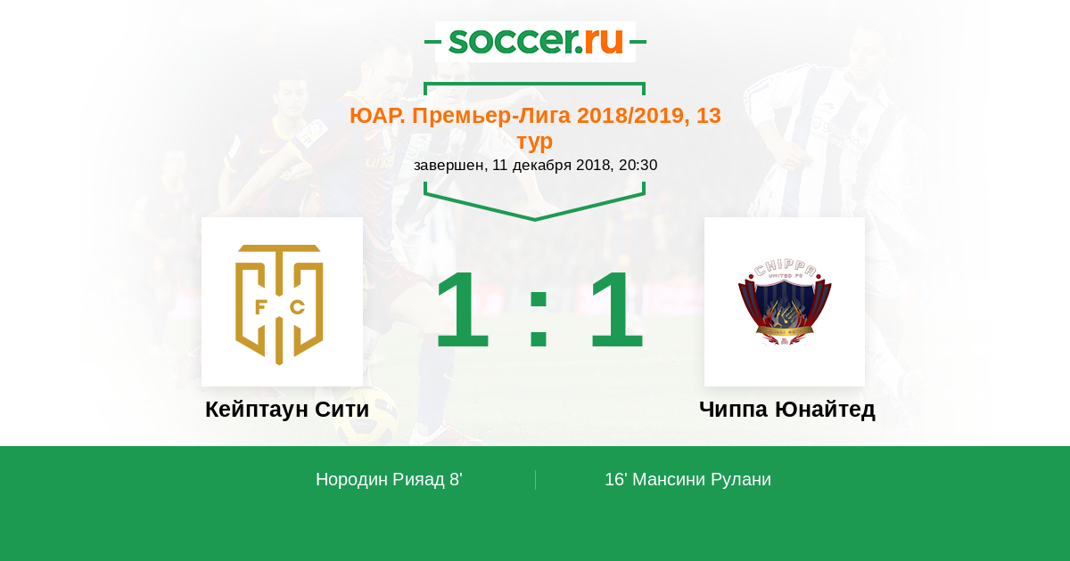 Протокол матча Кейптаун Сити против Чиппа Юнайтед