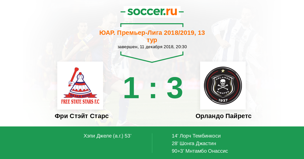 Протокол матча Фри Стэйт Старс против Орландо Пайретс