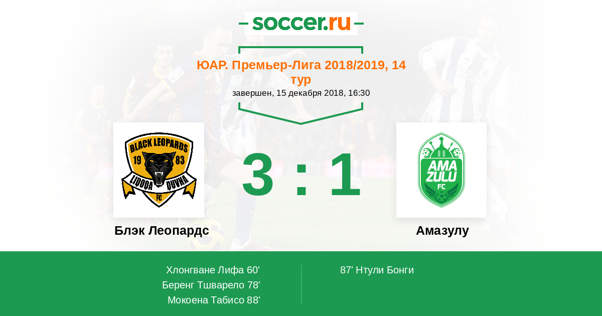 Протокол матча Блэк Леопардс против Амазулу