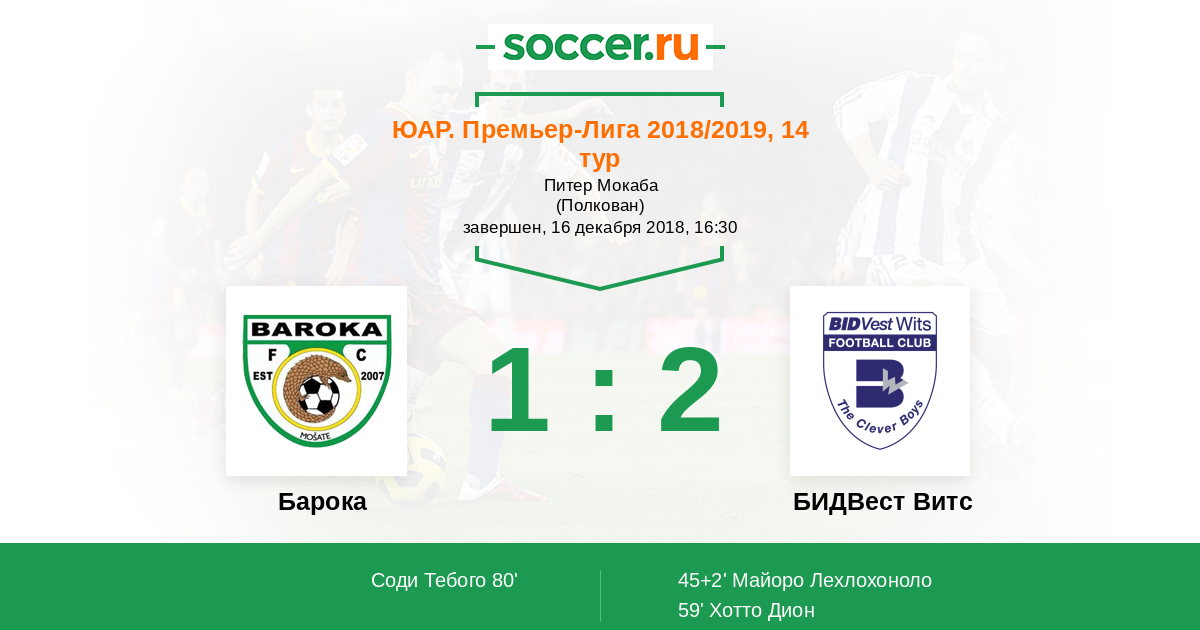 45+2’ 0:1 Майоро Лехлохоноло