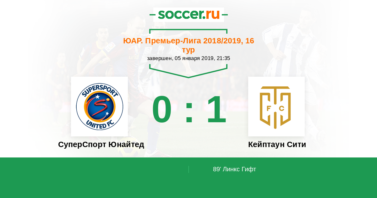 Протокол матча СуперСпорт Юнайтед против Кейптаун Сити