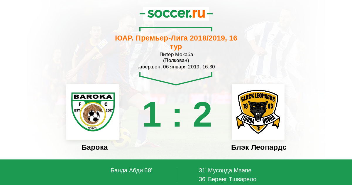 36' (0:2) Беренг Тшварело (15) (Мудау Хулисо (6))