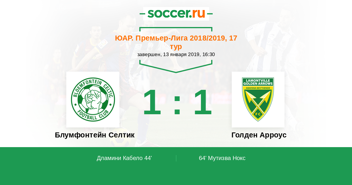 Протокол матча Блумфонтейн Селтик против Голден Арроус