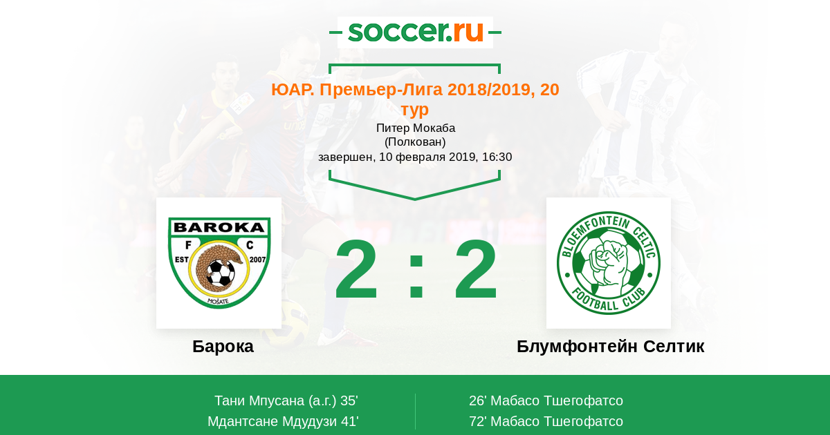 Протокол матча Барока против Блумфонтейн Селтик