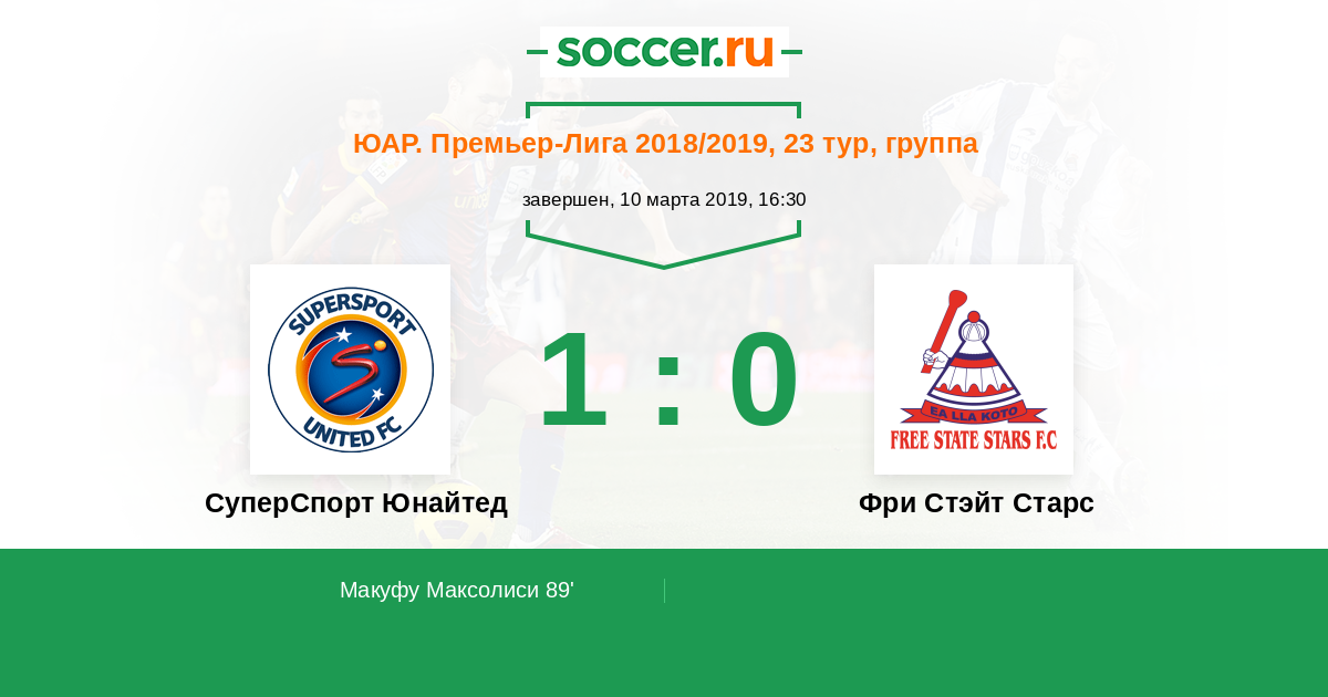 Протокол матча СуперСпорт Юнайтед против Фри Стэйт Старс
