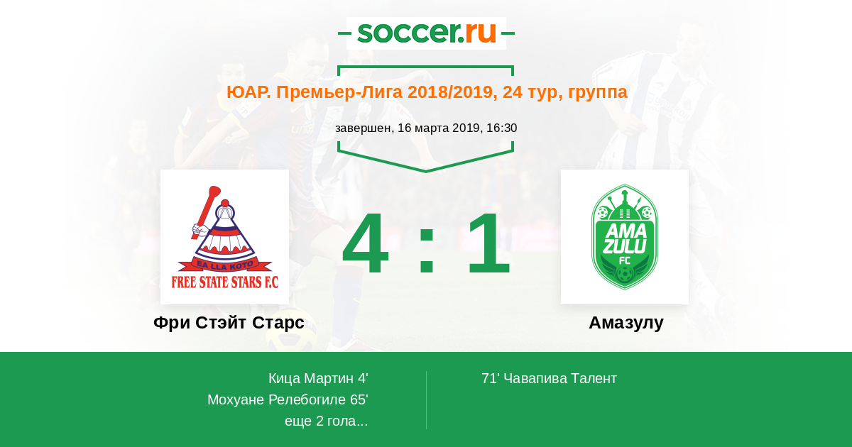 Протокол матча Фри Стэйт Старс против Амазулу