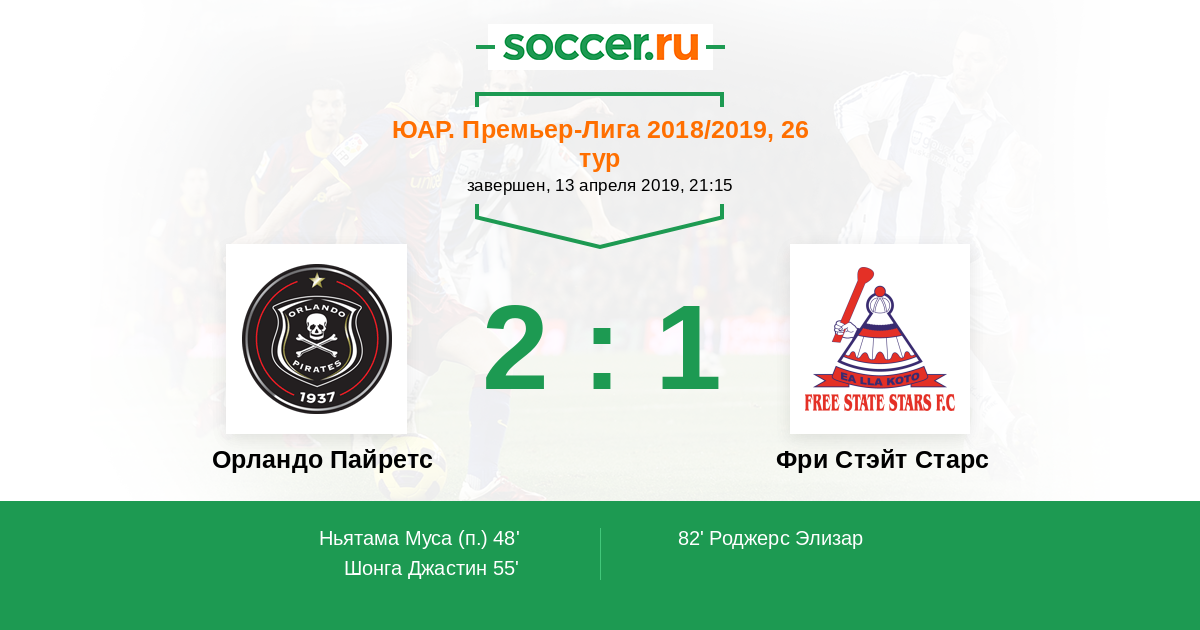 Протокол матча Орландо Пайретс против Фри Стэйт Старс