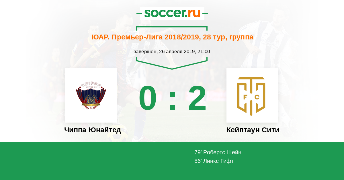 Протокол матча Чиппа Юнайтед против Кейптаун Сити