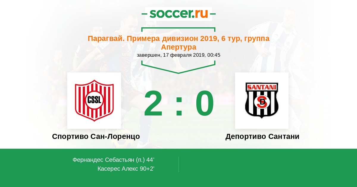 Протокол матча Спортиво Сан-Лоренцо против Депортиво Сантани