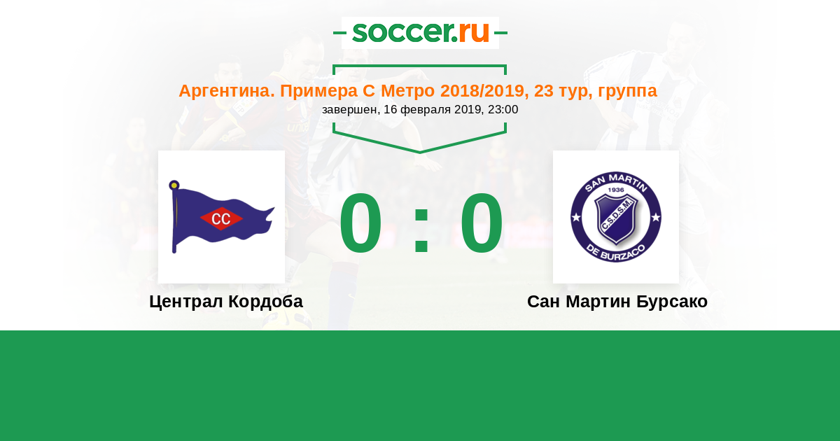 История матча Централ Кордоба против Сан Мартин Бурсако