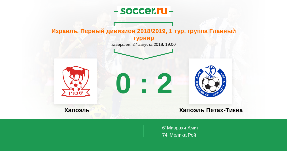 Протокол матча Хапоэль против Хапоэль Петах-Тиква