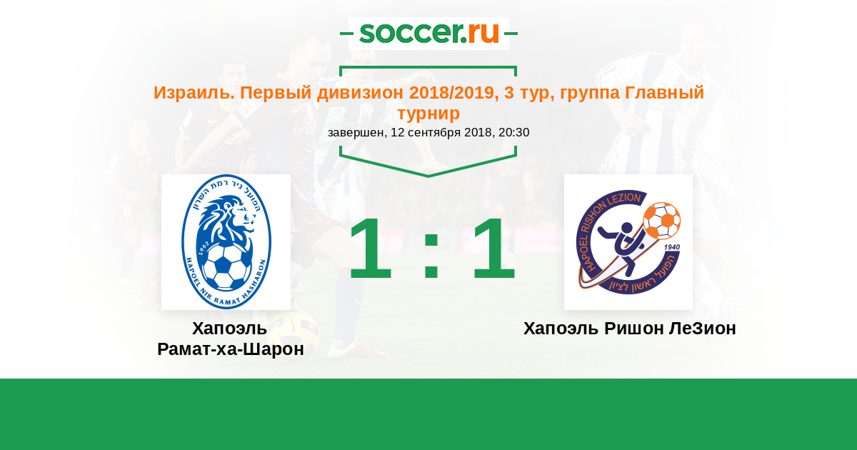 Израиль. Премьер-Лига 24.12.2011 Хапоэль Ришон ЛеЗион Логотип футбольный клуб Хапоэль Ришон ЛеЗион 1:1 Логотип футбольный клуб Хапоэль Рамат-ха-Шарон Хапоэль Рамат-ха-Шарон