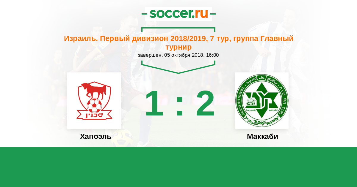 Израиль. Первый дивизион 01.02.2019 Маккаби Логотип футбольный клуб Маккаби (Ахи Назарет) 3:0 Логотип Хапоэль (Бней Лод) Хапоэль