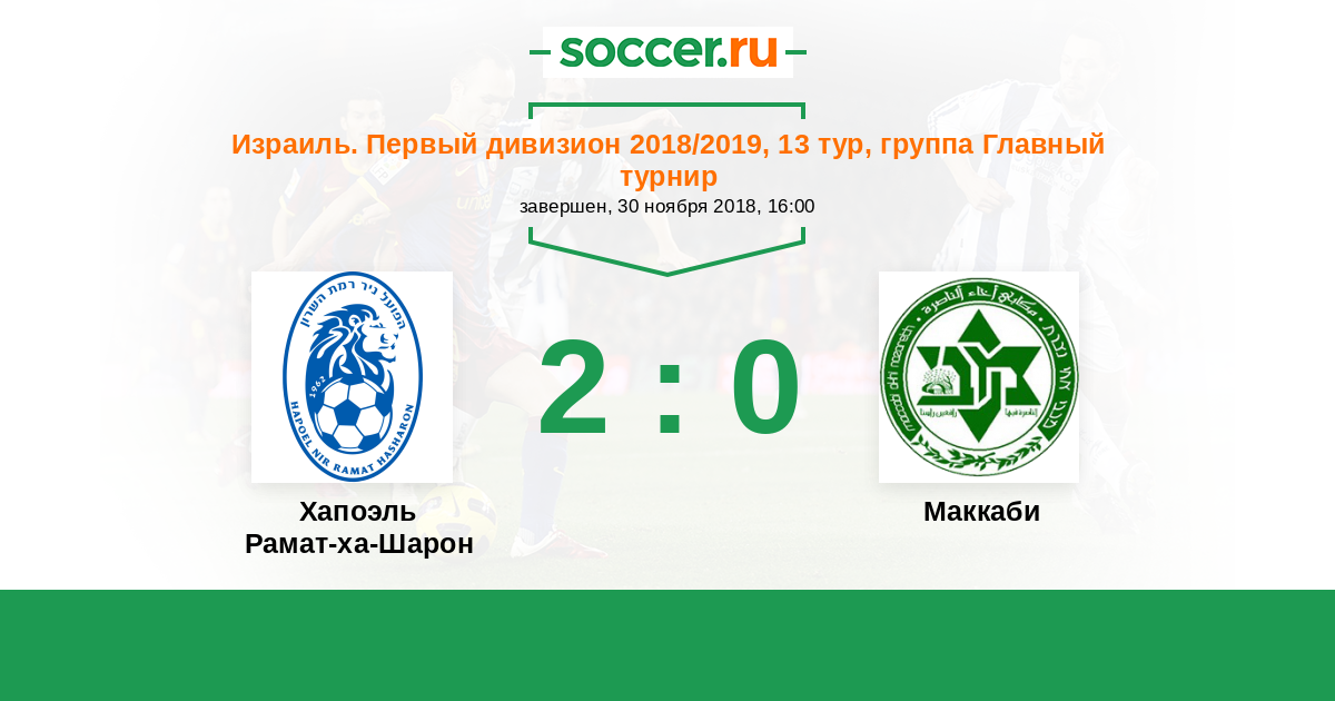 Израиль. Первый дивизион 02.03.2018 Маккаби Логотип футбольный клуб Маккаби (Ахи Назарет) 2:1 Логотип футбольный клуб Хапоэль Рамат-ха-Шарон Хапоэль Рамат-ха-Шарон