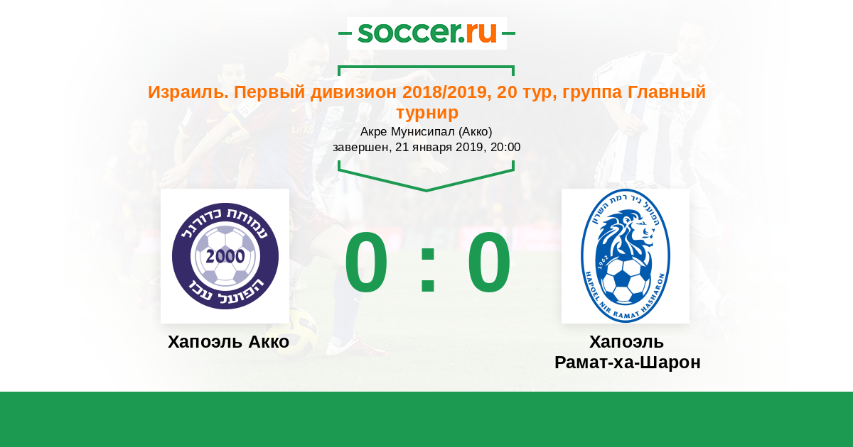 Израиль. Первый дивизион 21.02.2020 Хапоэль Рамат-ха-Шарон Логотип футбольный клуб Хапоэль Рамат-ха-Шарон 0:0 Логотип футбольный клуб Хапоэль Акко Хапоэль Акко