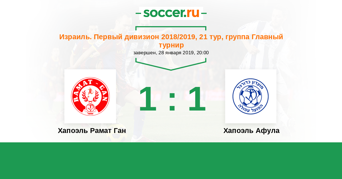 История матча Хапоэль Рамат Ган против Хапоэль Афула
