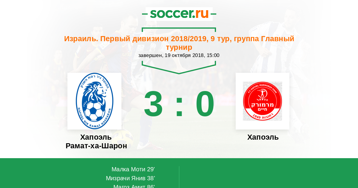 Протокол матча Хапоэль Рамат-ха-Шарон против Хапоэль