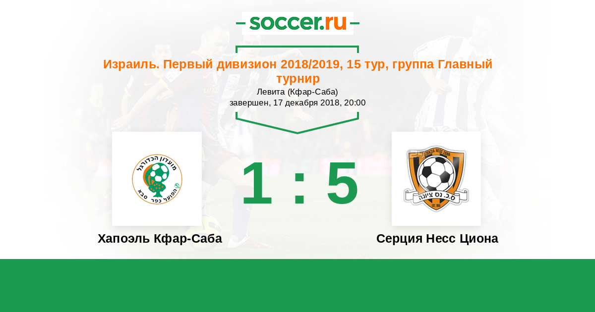 Израиль. Первый дивизион 29.03.2019 Серция Несс Циона Логотип футбольный клуб Серция Несс Циона 2:1 Логотип футбольный клуб Хапоэль Кфар-Саба Хапоэль Кфар-Саба