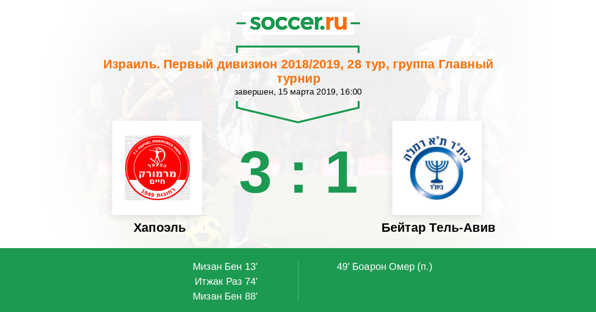 Протокол матча Хапоэль против Бейтар Тель-Авив
