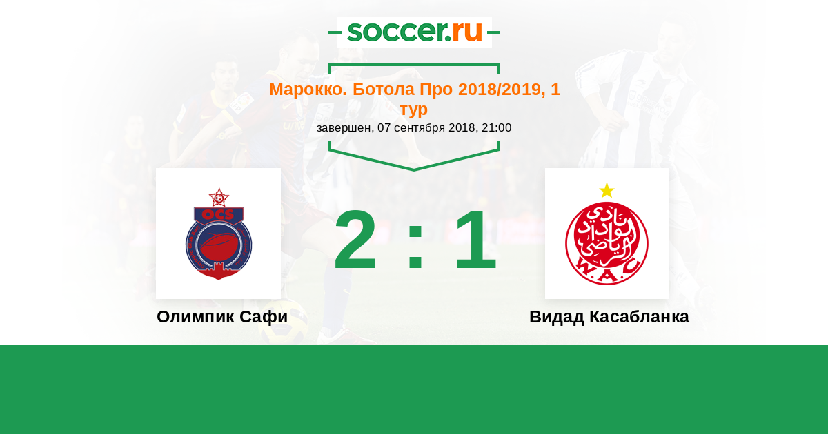 Марокко. Ботола Про 07.02.2019 Видад Касабланка Логотип футбольный клуб Видад Касабланка 1:0 Логотип футбольный клуб Олимпик Сафи Олимпик Сафи