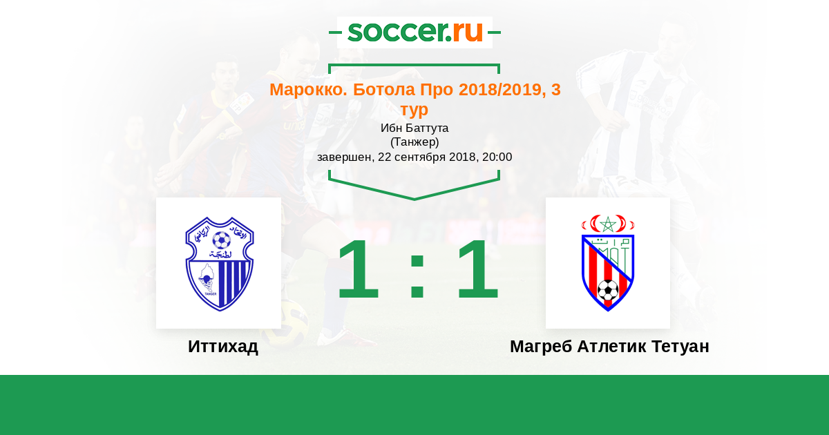 Марокко. Ботола Про 16.02.2019 Магреб Атлетик Тетуан Логотип футбольный клуб Магреб Атлетик Тетуан 1:1 Логотип футбольный клуб ИР Анже (Танжер) ИР Анже