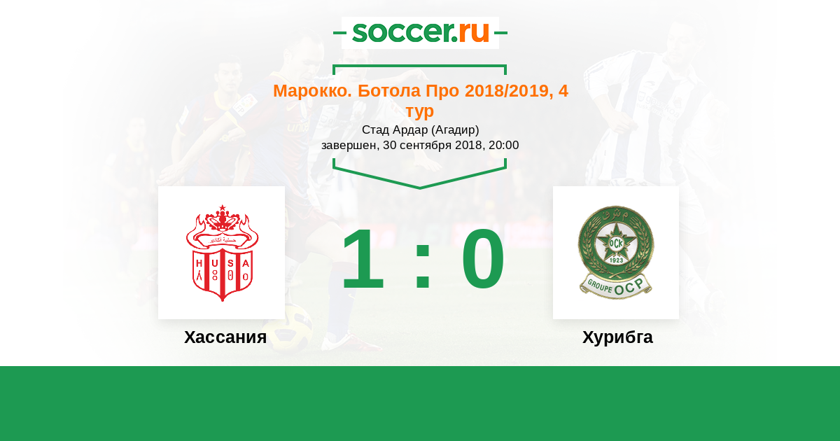 Марокко. Ботола Про 04.03.2018 Хурибга Логотип футбольный клуб Хурибга 2:1 Логотип футбольный клуб Хассания (Агадир) Хассания