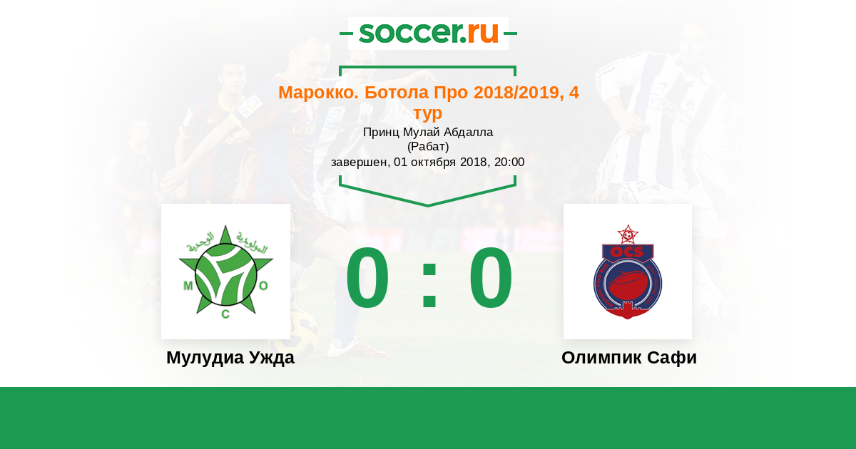 Марокко. Ботола Про 07.10.2020 Мулудиа Ужда Логотип футбольный клуб Мулудиа Ужда 1:0 Логотип футбольный клуб Олимпик Сафи Олимпик Сафи