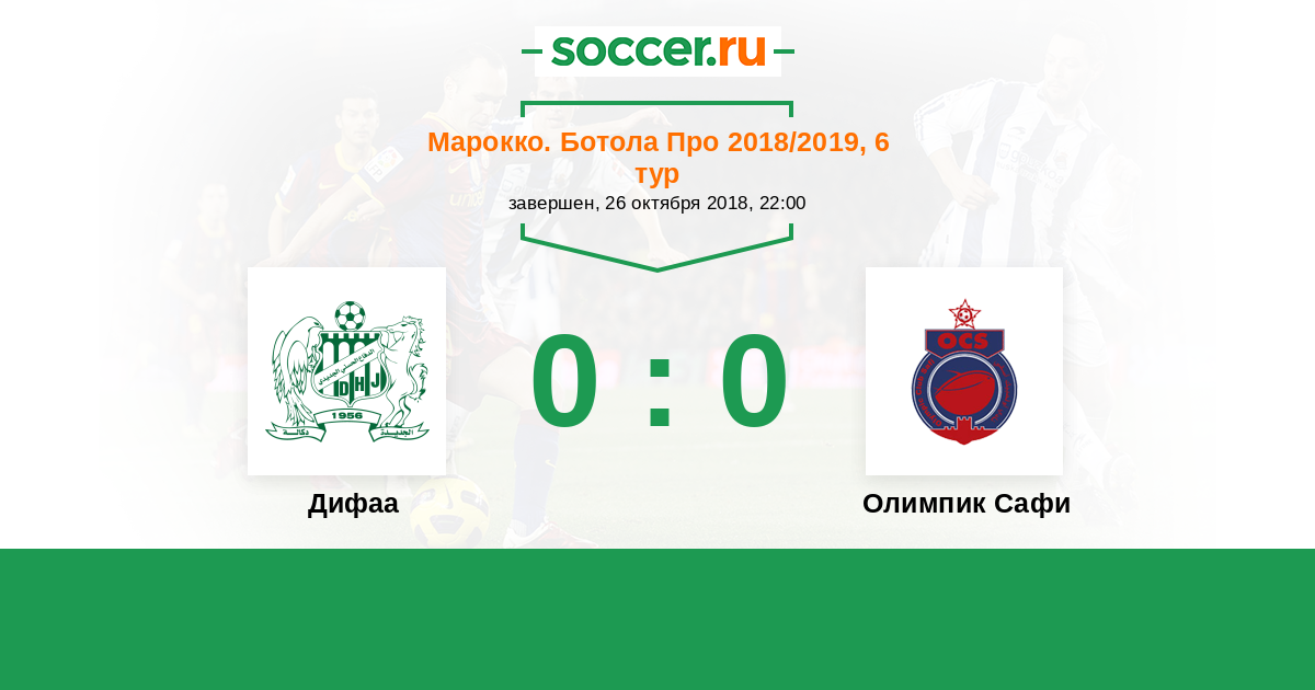Марокко. Ботола Про 20.05.2018 Дифаа Логотип футбольный клуб Дифаа (Эль-Жадида) 1:0 Логотип футбольный клуб Олимпик Сафи Олимпик Сафи