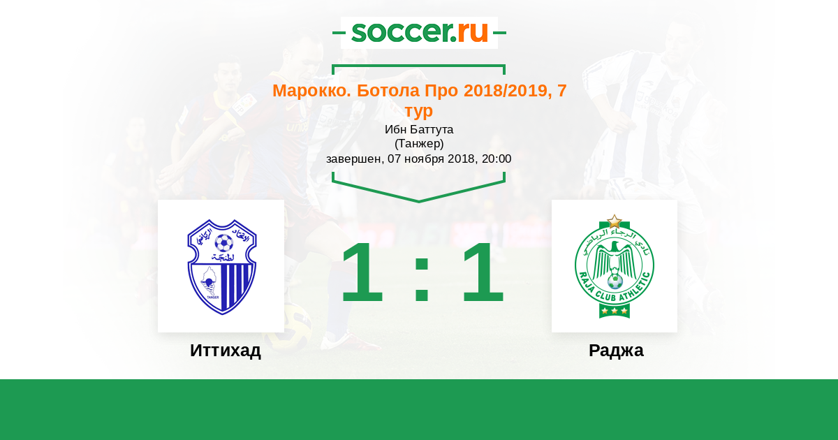Марокко. Ботола Про 01.10.2017 ИР Анже Логотип футбольный клуб ИР Анже (Танжер) 1:1 Логотип футбольный клуб Раджа (Касабланка) Раджа