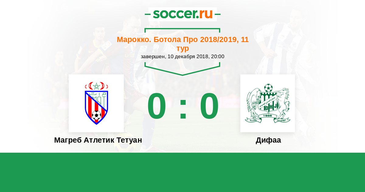 Марокко. Ботола Про 21.12.2019 Магреб Атлетик Тетуан Логотип футбольный клуб Магреб Атлетик Тетуан 2:1 Логотип футбольный клуб Дифаа (Эль-Жадида) Дифаа
