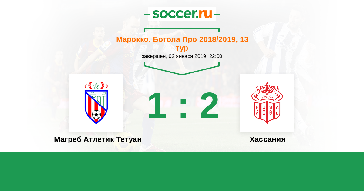 Марокко. Ботола Про 28.12.2022 Магреб Атлетик Тетуан Логотип футбольный клуб Магреб Атлетик Тетуан 2:1 Логотип футбольный клуб Хассания (Агадир) Хассания