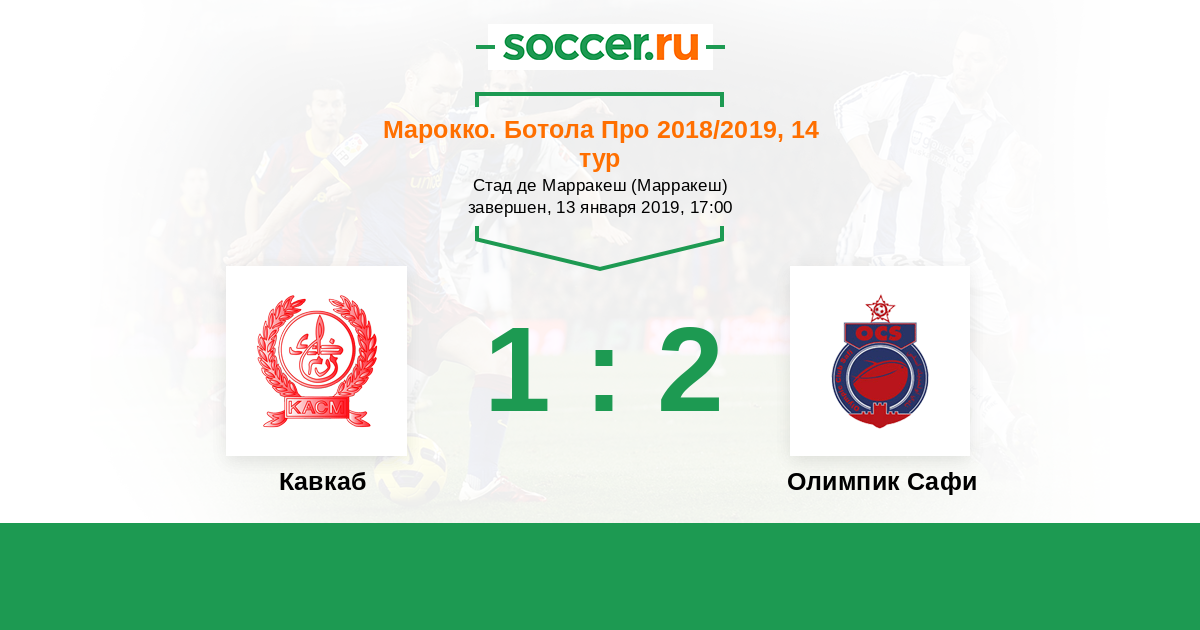 Марокко. Ботола Про 25.03.2018 Олимпик Сафи Логотип футбольный клуб Олимпик Сафи 2:1 Логотип футбольный клуб Кавкаб (Марракеш) Кавкаб