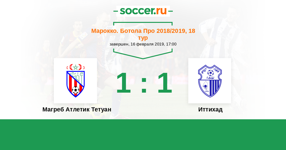 Марокко. Ботола Про 28.02.2016 Магреб Атлетик Тетуан Логотип футбольный клуб Магреб Атлетик Тетуан 1:0 Логотип футбольный клуб ИР Анже (Танжер) ИР Анже