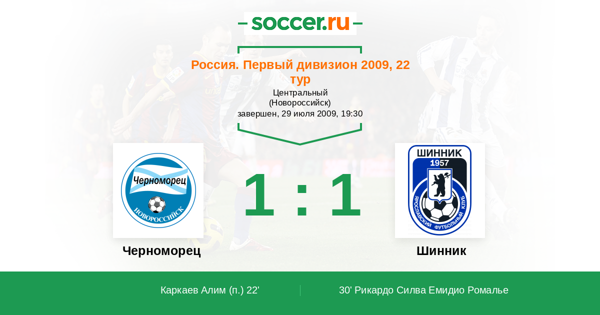 Протокол матча Черноморец против Шинник