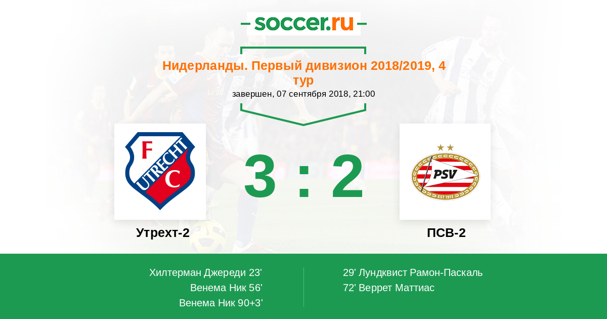 Протокол матча Утрехт-2 против ПСВ-2