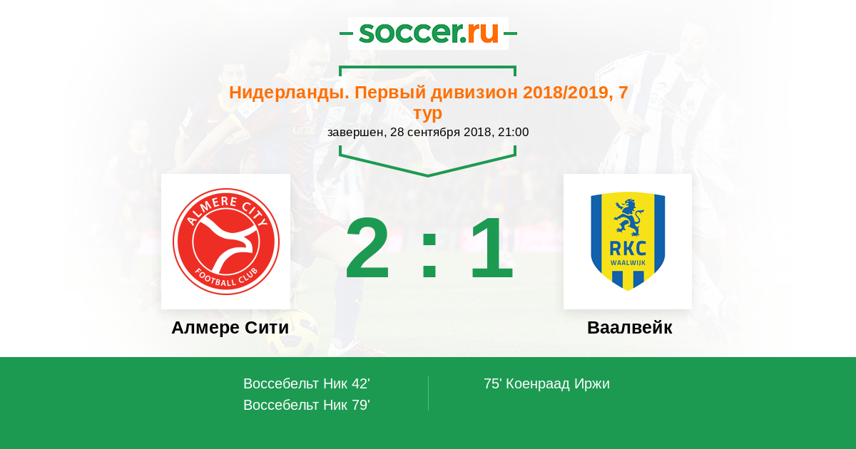42' (1:0) Воссебельт Ник (8) (Мирани Дамон (14))