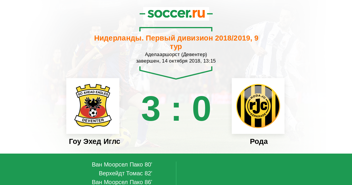 80' (1:0) Ван Моорсел Пако (10) (Леливельд Джулиан (2))